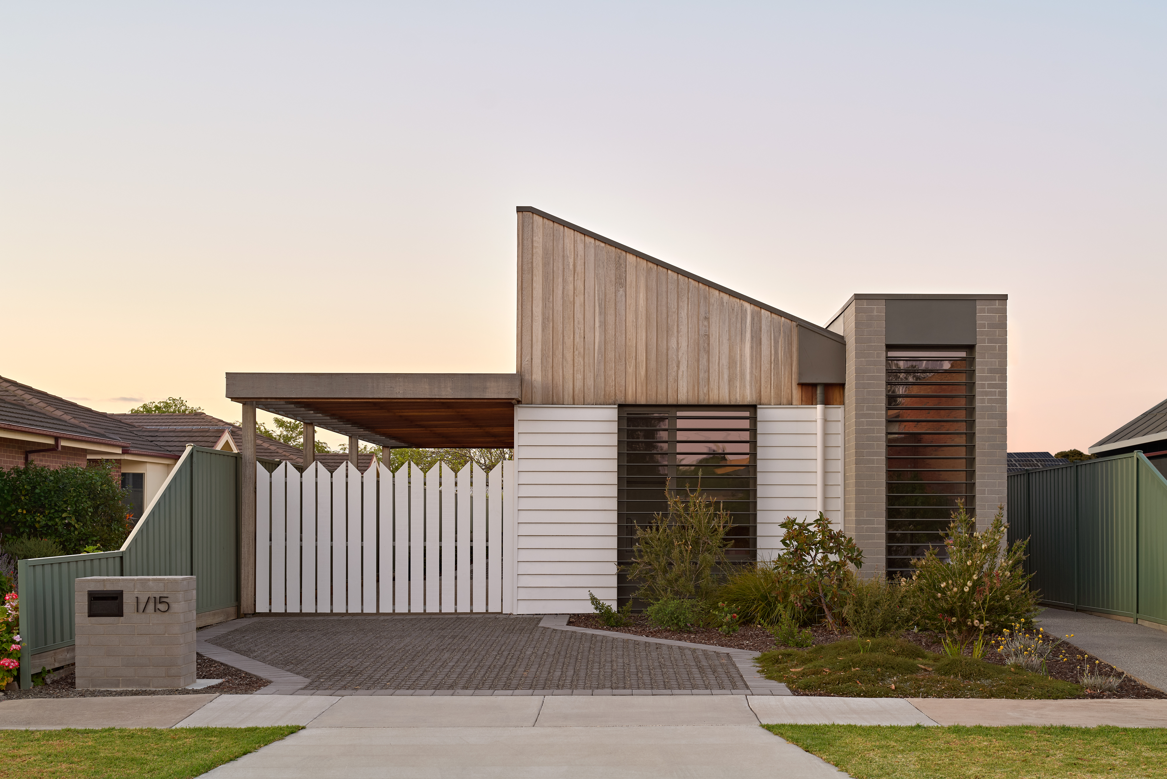 Located near significant civic architecture—including the Gregory Burgess–designed Ss Michael and John’s Catholic Church—the house carefully negotiates scale and presence. Rather than mimicking surrounding non-residential forms, Horsham House establishes a distinctly residential identity while maintaining a calm, respectful streetscape presence.